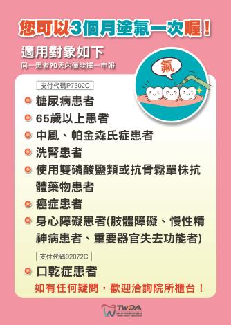 氟化物治療適用對象—【您可以3個月塗氟一次喔】